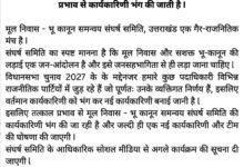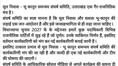 मूल निवास – भू कानून समन्वय संघर्ष समिति की कार्यकारिणी हुई भंग