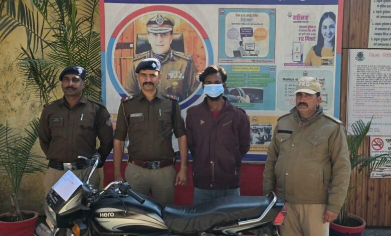 साथ ही पूर्व में इस प्रकार की घटना को अंजाम देने वाले अभियुक्तों की वर्तमान स्थिति की जानकारी कर उनका भौतिक सत्यापन किया गया। पुलिस टीम द्वारा किये जा रहे प्रयासों से दिनांक –06/12/2025 की रात्रि में पुलिस टीम द्वारा अम्बाडी जीवनगढ क्षेत्र से अभियुक्त फैसल पुत्र श्री सलीम निवासी नई बस्ती पुराना घास कांटा थाना शहर कोतवाली सहारनपुर उ0प्र0 उम्र 26 वर्ष को घटना में चोरी किये गए वाहन संख्या UK16A-6543 मो0सा0 स्पलेंडर प्लस के साथ गिरफ्तार किया गया।