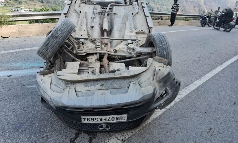 घोलतीर के पास हाईवे पर पलटी कार, पुलिस की तत्परता हुए सुरक्षित रेस्क्यू