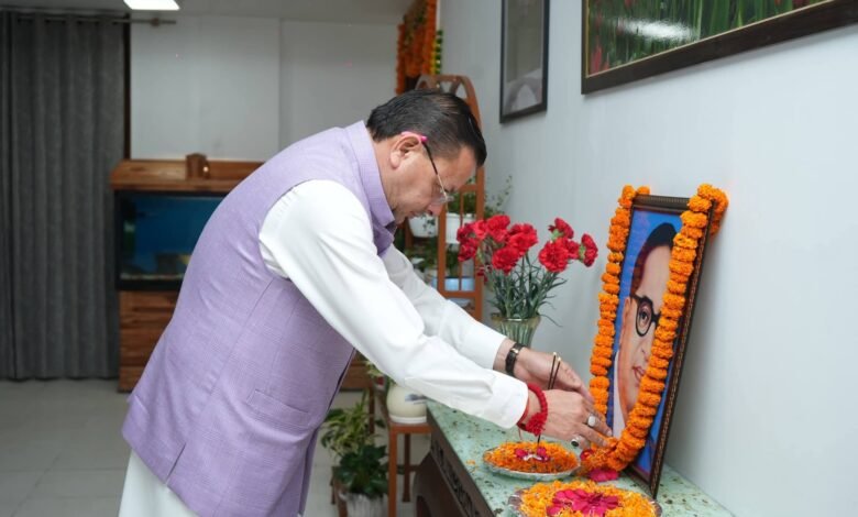 सीएम धामी ने भीमराव अंबेडकर की जयंती पर उनके चित्र पर पुष्प अर्पित कर दी श्रद्धांजलि