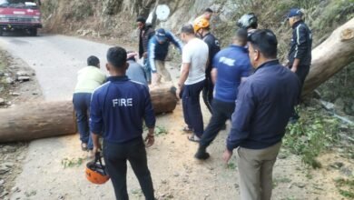 फायर सर्विस टीम व चौकी जखोली पुलिस ने सड़क पर गिरे पेड़ को हटाकर यातायात किया सुचारू
